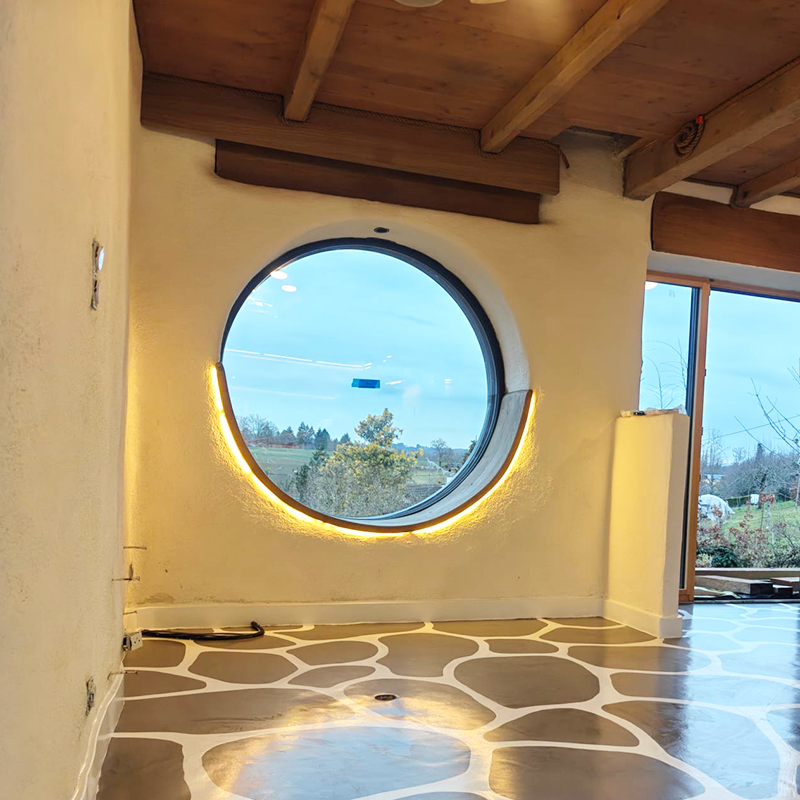 Pose menuiseries extérieures Menuiseries extérieures Audrey et Yiannis à Tulle Menuiseries du fournisseur Minco, via le réseau Twiza. Menuiseries hybrides ALU-Bois, pin naturel intérieur, alu extérieur (RAL 7016) Pose en tunnel, dans ossature bois avec isolation en paille recouverte par la suite d’un enduit à la chaux. Oeil de boeuf tout ALU avec tablette de finition intérieure, magnifiquement réalisée par Yiannis ! Découvrez leur très joli projet : « Le Havre de paix ». J’AI UN PROJET SIMILAIRE, ON EN PARLE !
